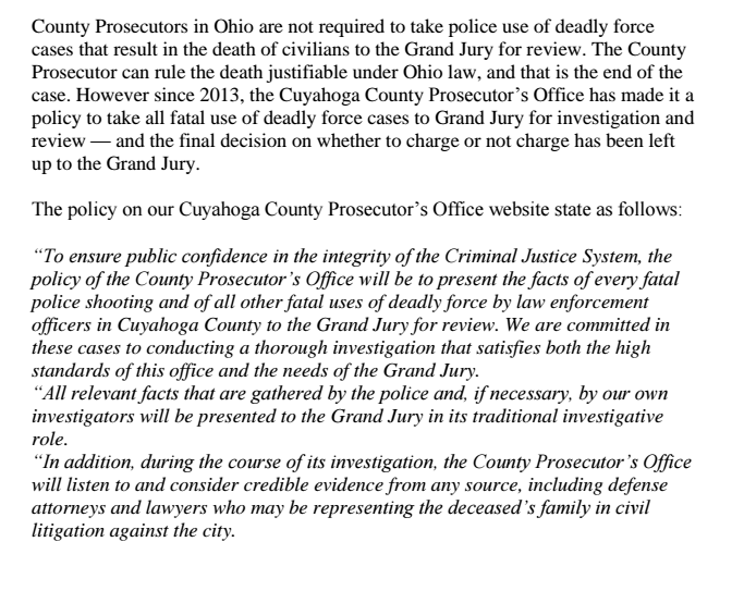 A reminder that court officials, members of the Prosecutor's Office, lawyers and just about everyone else had no idea that this was what happened in the Rice case. Nor does it address the deficiencies in a policy that asks the grand jury to disagree with the Prosecutor's recommendation and opinion in order to pursue — or even vote — on charges.